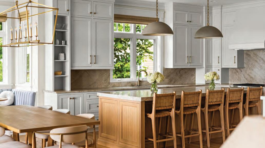 “Do you like people in your kitchen while you’re cooking? Do you have a busy kitchen where kids need space to come in and out, opening the fridge?” Kitchen design can be as elaborate as installing two dishwashers and custom multitier spice racks or as small and geographically thoughtful as incorporating Petoskey stone backsplash tile and Leland blue drawer-pull knobs.