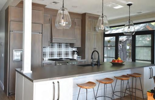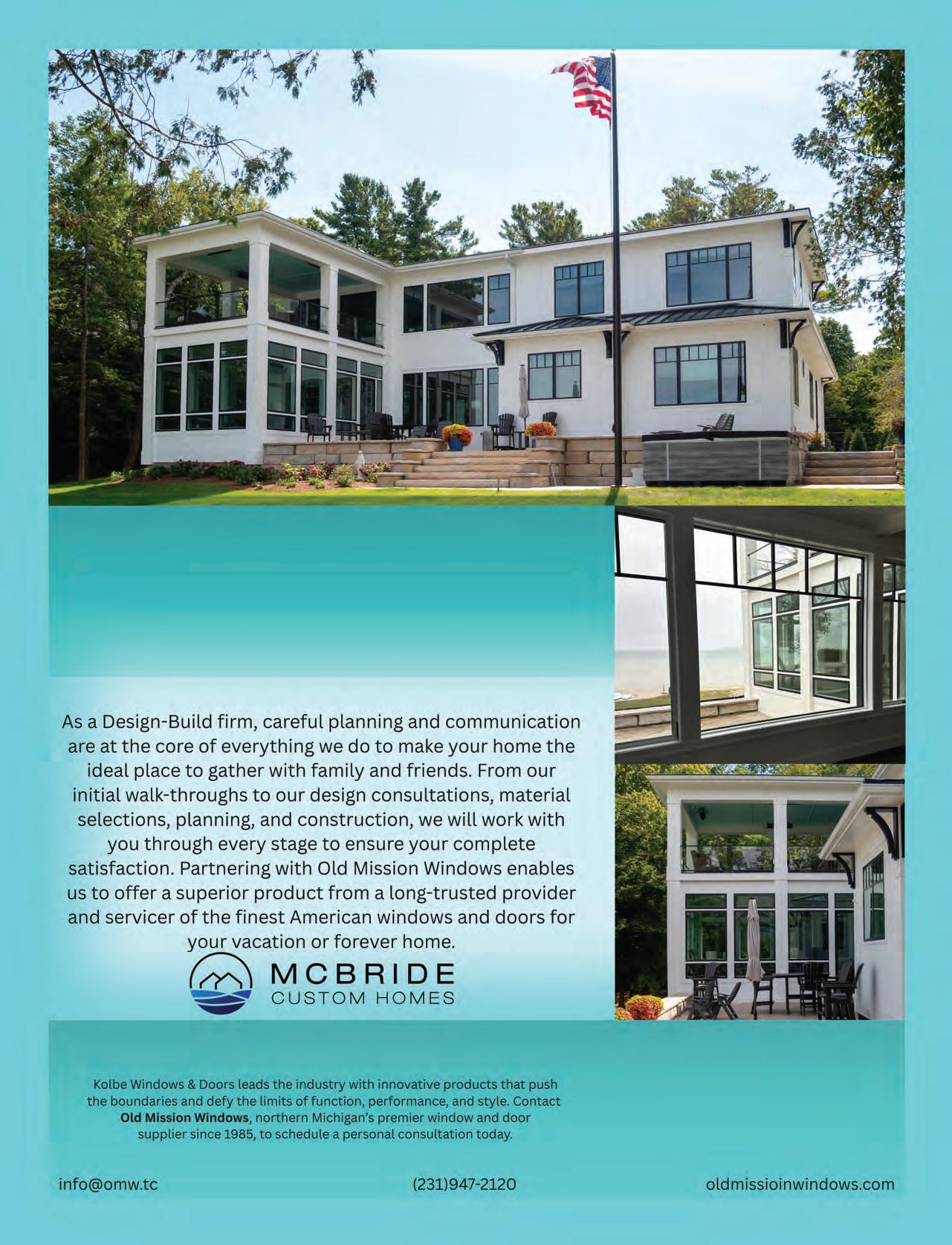 appearances throughout the home. The furnishings are an eclectic mix Liz inherited from her grandmother, found at antique stores, bought on Facebook Marketplace and purchased new. Beyond leaning on her own design sense, she worked closely with interior designer Meghan Jurkovich, then of HomeWorks Interiors in Traverse City, as well as Steve Rilenge’s daughter, Adrienne. “She and I see eye to eye on design, so I could trust her to make design decisions when I wasn’t there,” Liz says. This summer will be the family’s first in their new cottage. It won’t be long now before the three Ledtke boys bust off that ferry—ready to make their own childhood memories on Mackinac Island.