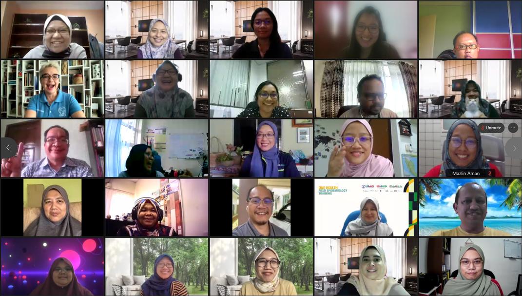 Training was executed virtually for the first time this year. Combining officers and academicians from various disciplines, the training was held from 8th to 10th September 2021. Thirty-eight participants attended this 3-day training in applying One Health competencies to respond efficiently when managing an infectious disease outbreak. This training empowered the current One Health workforce with one of the most important technical and core competencies for outbreaks preparedness and management which is field epidemiology.
