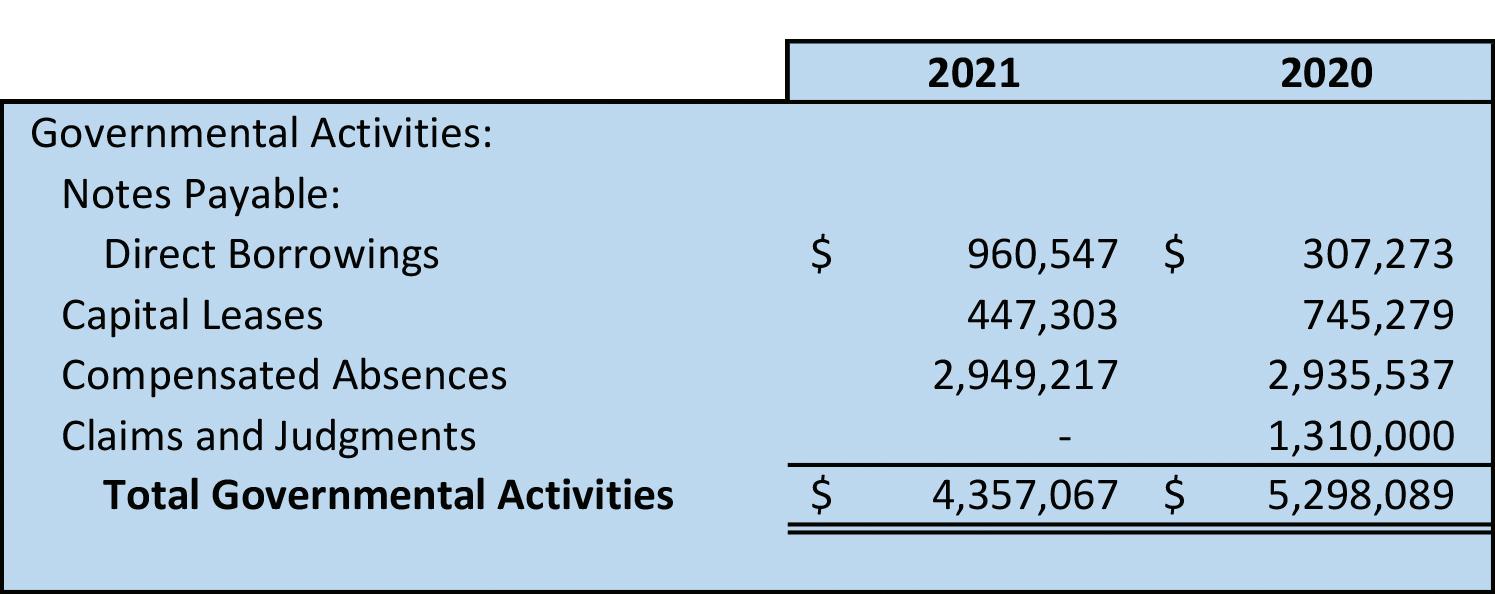 Listed right is a summary of Okeechobee County’s long-term debt as of September 30th for fiscal year 2020/2021.