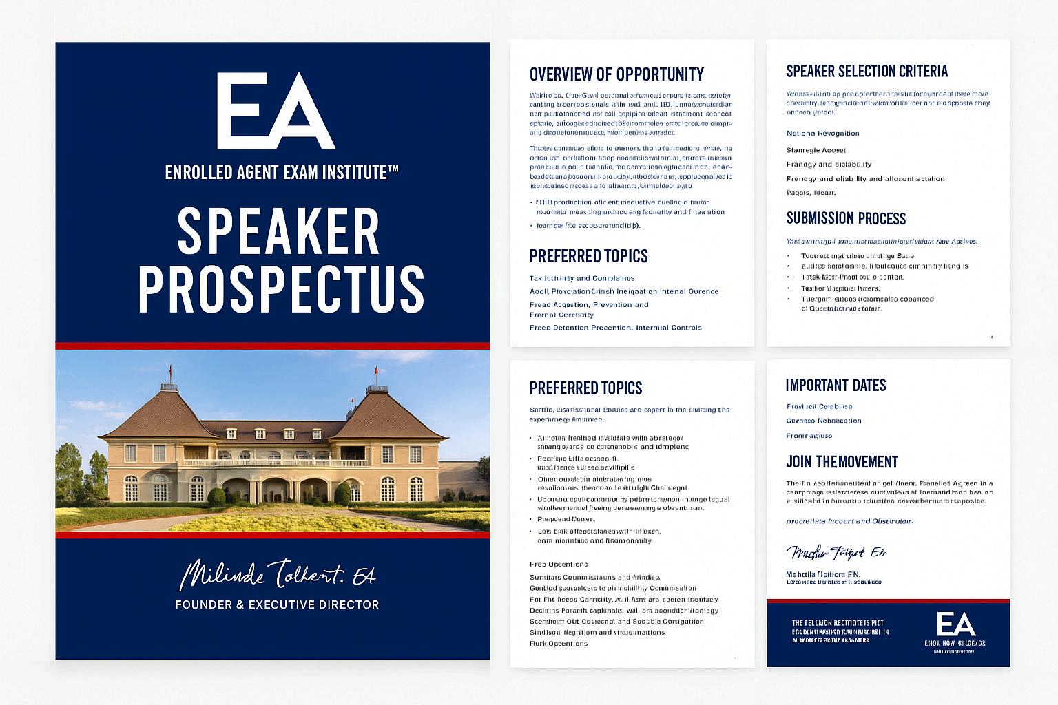 Would you like to gain national recognition as a trusted authority in your field? This is your opportunity to influence the next generation of tax professionals while strengthening your own visibility and impact across the industry. We proudly welcome Enrolled Agents, CPAs, Tax Attorneys, Financial Strategists, and subjectmatter experts to present at upcoming EA Exam Institute™ conferences and webinars, where education meets innovation and leadership defines the experience.