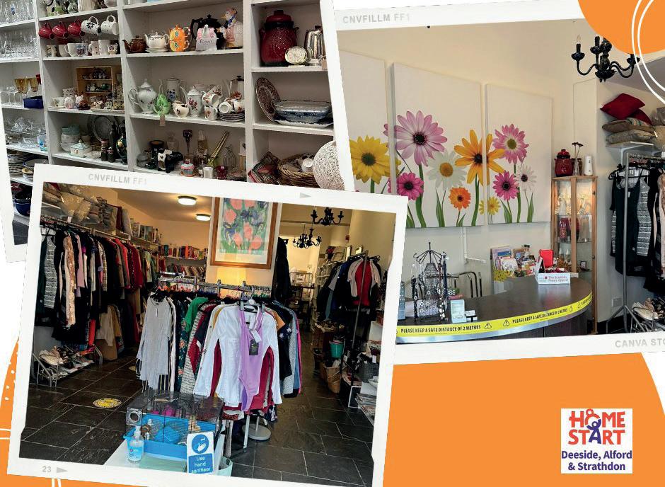 We have a fantastic charity shop in Alford. Our shops are social enterprises, meaning all monies raised go straight back into the charity and supporting local families. We have various volunteering opportunities within our shops to suit a variety of needs. If you have a child/ren aged 5 or under and you feel you could benefit from some support, or you would simply like to find out more about our services and volunteering opportunities, please get in touch by telephone on 01330 824443 or email info@homestartdeeside.org
