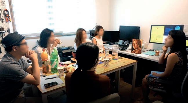 에 대해 소개하는 시간을 가졌습니다. 사전에 조사해둔 두 소재의 성분과 배양 방 식을 공유하고, 소재를 개발하고 발전시키는 세계 각지 연구소의 논문들과 연구 사례들(수잔 리Suzanne Lee 의 희생없는 가죽Victimless Leather, 에코베이티브 Ecovative 의 신소재 DIY제작 키트 등)도 함께 짚어보았습니다. 또한, 바이오-신 소재 분야에서 주목받는 새로운 개발 사례들을 살펴보고, DIY 실험도구들의 제작 방안에 대한 의견을 공유했습니다.