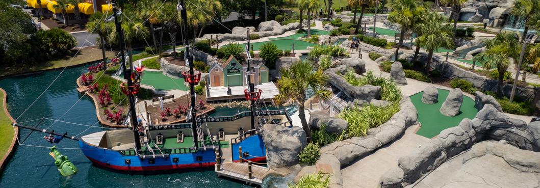 Set sail for adventure at Shipwreck Island Adventure Golf, a longrunning course just a parrot’s perch from the oceanfront. Navigate 36 holes of miniature golf mayhem amidst the wreckage of a mythical pirate ship, The Myrtle Maiden. Play either the Skipper’s Course or Captain’s Course and watch out for playful sharks and tropical treasures as you putt past cascading waterfalls and lush greenery. myrtlebeachfamilygolf.com