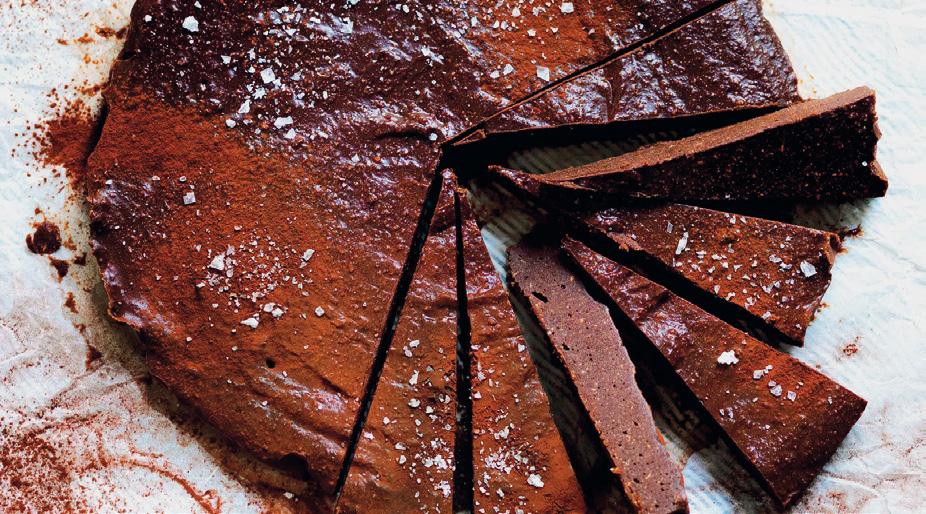 • Foderate una tortiera (dal diametro di 20 cm) con la carta da forno. Versatevi dentro il composto e compattate con una spatola. Spargete sulla superficie qualche fiocco di sale. Ponete la torta in frigorifero a rassodare per almeno 5 ore.