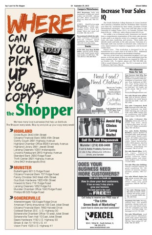 Circle Buick 2440 45th Street Citizens Financial Bank 3853 45th Street Comfy Couch 2631 Highway Avenue Highland Chamber Office 8536 Kennedy Avenue Highland Library 2841 Jewett Street Lansing Cleaners 10351 Indianapolis Lincolns Restaurant 2813 Highway Avenue Standard Bank 2930 Ridge Road Thrift Center 2821 Highway Avenue Ultra 8401 Indianapolis Blvd.