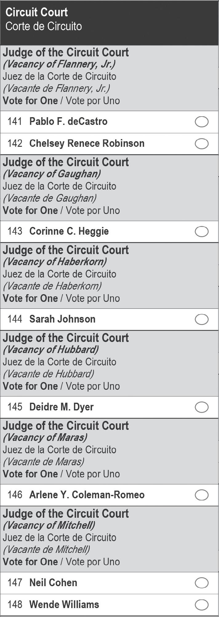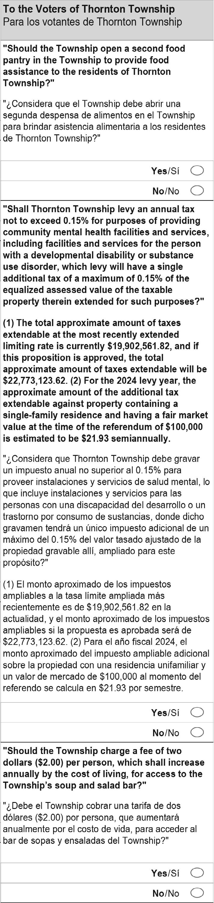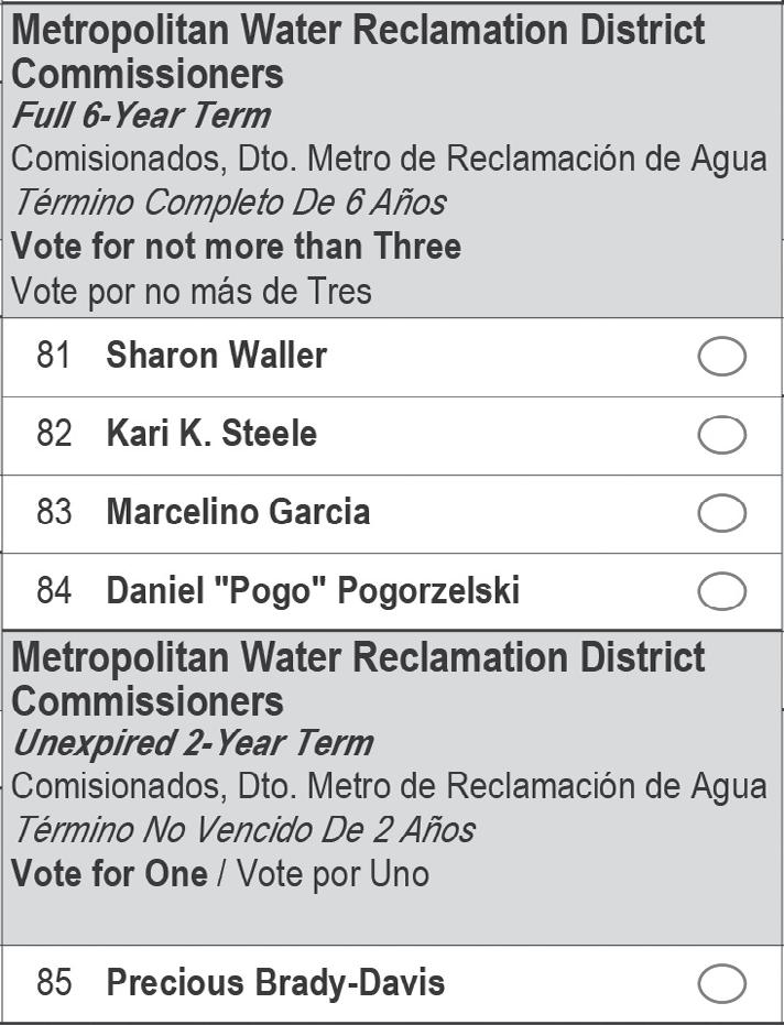 At the Primary Election the voters will vote on the following contests and referenda questions. Referenda/Questions of Public Policy will be voted upon in those precincts of Cook County under the jurisdiction of the Cook County Clerk in which a Unit of Local Government has requested the County Clerk’s Office to place said referenda/questions of public policy on the ballot.