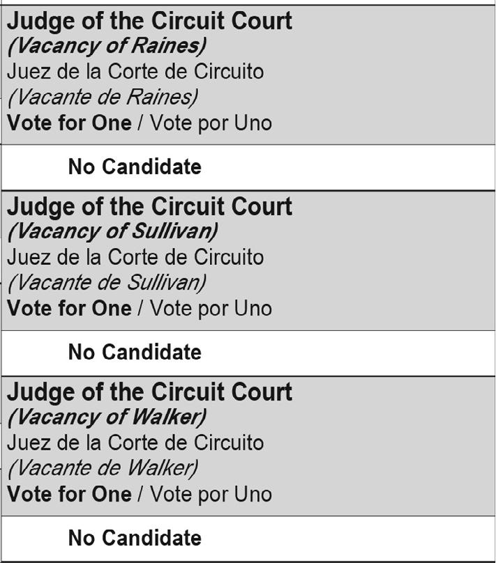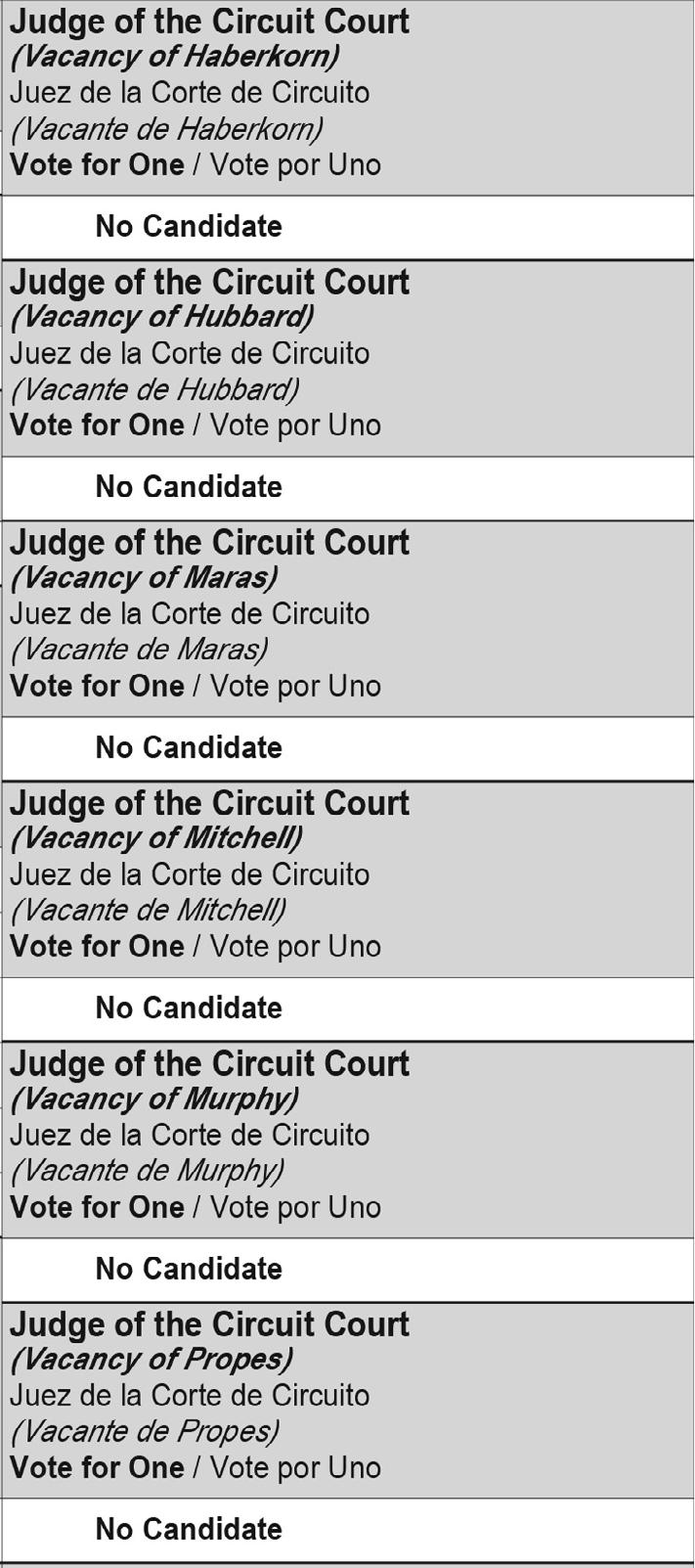 NOTA: La letra (N) después de la dirección de un lugar de votación indica que el lugar de votación en sí mismo no es accesible para personas discapacitadas, aunque otras partes del edificio pueden ser accesibles. La Junta Electoral del Estado ha concedido una exención y hay carteles publicados que indican si todo el edificio es accesible o si hay una entrada especial.