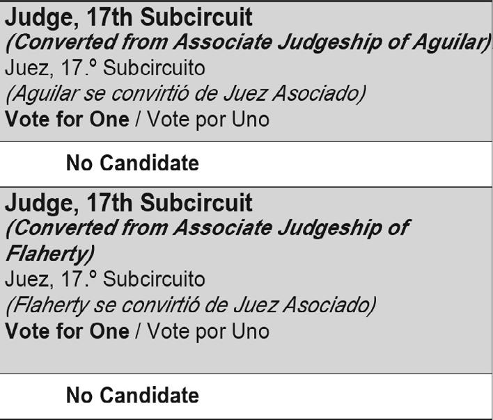 The Polls for said Primary Election will be open from 6 a.m. to 7 p.m. Locations are subject to change as necessity requires. Las urnas para tal eleccion primaria estarán abiertas de las 6 a.m. hasta las 7 p.m. Localidades están sujetas a cambio por necesidad.