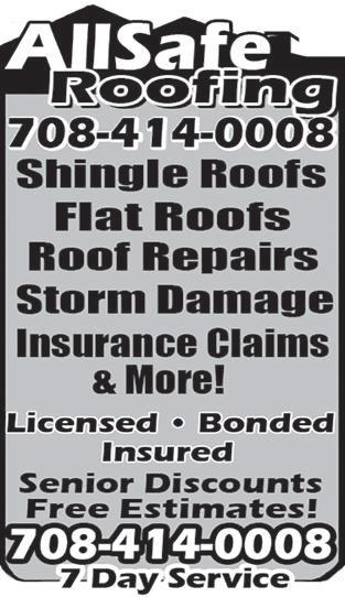 page 12 September 28, 2022 Say I saw it in The Shopper ROOFING REMODELING CALL TO JOIN THIS DIRECTORY! 708-333-5901 CONCRETE Brian Caputo’s SouthWest Concrete Commercial & Residential Concrete Specialist of • Driveways • Sidewalks • Patios • Garages • Stamp & Color • Decorative Concrete Overlay FREE SPECIAL Free concrete sealer with purchase of new concrete 708-514-0457 Brian BBB Accredited • 5 Star Rating cuputossouthwest construction.com HEATING & APPLIANCE REPAIR MAN #1 Priority is Servicing your Heating, Refrig., Washer, Dryer, Stove. FREE FREE FREE service charge with same day repair. $25 discount on all repairs. CALL AL AT 708-985-1623 APPLIANCE REPAIR DECORATING ECONOMY PAVING • Drive Ways • Parking Lots • Bonded & Insured • Owner Supervised 708-481-1380 ASPHALT PAVING 2681 Route 394 Crete, IL 60417 (708) 672-6111 SENIOR LIVING/CARE HEATING & AC HANDYMAN NEIGHBORHOOD CONTRACTOR All types of Roofing, Siding & Gutters, Sofit & Fascia, Insurance Work Residential /Commercial IL & IN Licensed & Insured Free Estimates 708-333-8951 219-319-0993 Matejko Family Owned for 45 Years GUTTERS • Seamless Alum. Gutter Installations • Leaf Relief Covers • Minor Exterior Repairs • Gutter Cleaning 219/201-6966 THE GUTTER GUY WIZARD HEATING & COOLING SPRING SPECIAL! A/C clean & check $69.95 Emergency service available 872-242-6673 PAVING & SEALING PERFORMANCE PAVING & SEAL COATING CALL FOR A FREE ESTIMATE 708-476-5680 219-872-2184 Mr.Fix-It 708-895-5433 708-429-7479 SPECIAL•SPECIAL•SPECIAL MENTION THIS AD BACK TO BASICS REPAIRS DONE RIGHT ALL MAJOR APPLIANCES [HEATING & AC ESTIMATES AVAILABLE] TREE SERVICE MAGGY’S TREE SERVICE. • Tree’s Topped, Trimmed, Removed • Bush Removal, • Stump Removal • Walks shoveled Insured & Bonded. Free Estimates 708-200-8078 Problems R Solved HANDYMAN SERVICES General Repairs Drywall Basic Carpentry Painting Basic Electric Plumbing Holes, Cracks & Seams in Drywall SENIOR DISC OUNTS FREE E STIMA TE S Call 773-897-9464 Rob’s Tuckpointing Chimney & Brick Repairs Gutter Cleaning No Job Too Small. Very Reasonable. Call For Estimate 708-877-6860 VANDERWIELDES Window and Screen Repair • Table Tops • Patio Doors • Thermal Panels • Store Fronts 708-479-0049 TUCKPOINTING WINDOWS & SCREENS TRANSPORTATION Riverdale Transit Bus Shuttle Owned and Operated by Riverdale Taxi Casino and Hotel Shuttle 15 Passenger Shuttle 708-288-5038 FREE ESTIMATES INTERIOR • EXTERIOR Coronado Remodeling &Decorating, Inc. Quality Work at a Fair Price • Complete Remodeling • Bathrooms & Kitchens • Ceramic Tile • Drywall Repair • Paint • Installs Fences Hector (cell phone) 708-692-7357 Over ten years experience in South Suburbs, References Available Watch Our Videos at www.youtube.com/ users/coronadodecorating GUTTER CLEANING Super FlowGutter Cleaning Free Estimates Very Reasonable ASK FOR ROB 708-877-6860 Complete Home Remodeling Electrical • Plumbing Ceramic Tile • Laminate Flooring • Drywall • Painting • Fences • Roofing 708-625-7102 Hector Coronado FREE ESTIMATES! ATTORNEYS LIONEL HAIRSTON ATTORNEY AT LAW • Realty Buyer/Seller • Transfer On Death Instrument •Preparation of Deeds 708.692.0123 lionelhairston@sbcglobal.net MOVING DAILY MOVERS & CLEAN OUT SERVICES 20 miles one way $325-$425 Special Call for clean out estimates! 708-940-1378 G’s & Construction • Supply & Installed • Service Openers • Broken Springs, Cables • Entry & Storm Doors FREE ESTIMATES CALL 708-323-5954 Garage Doors GARAGE DOORS Read The Shopper online! Go to ISSUU.com/MyShopper