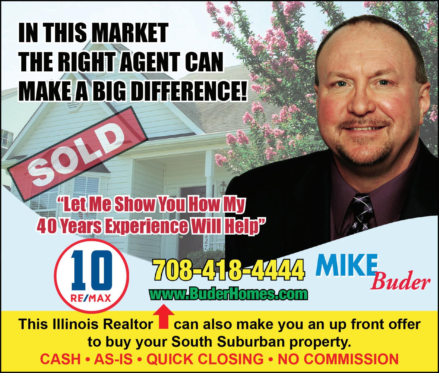 If you are looking to buy or sell real estate call Mike Buder at RE/MAX 2000 (708) 418-4444, E-mail: mikebuder@remax. net, Website: www.BuderHomes.com or Facebook Friend request Mike Buder: your comments are always welcome.