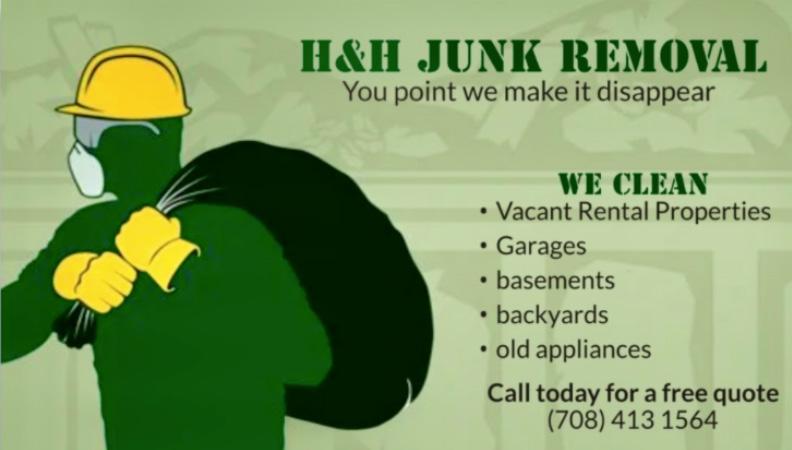 JUNK REMOVAL Time to make space! Cleanouts (garage attic, basement, shed). Hauling away appliances, furniture, trash. WE RECYCLE! Call ‘til 8pm. 708-8988668