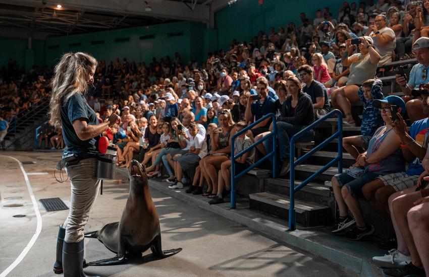 To celebrate our 50th anniversary, we launched a new California sea lion show in June The show is a birthday party and includes many opportunities to engage the audience It also emphasizes the importance of sustainability and ways to reduce plastic to prevent ocean pollution. The sea lions and their trainers worked hard to perfect all their new moves!