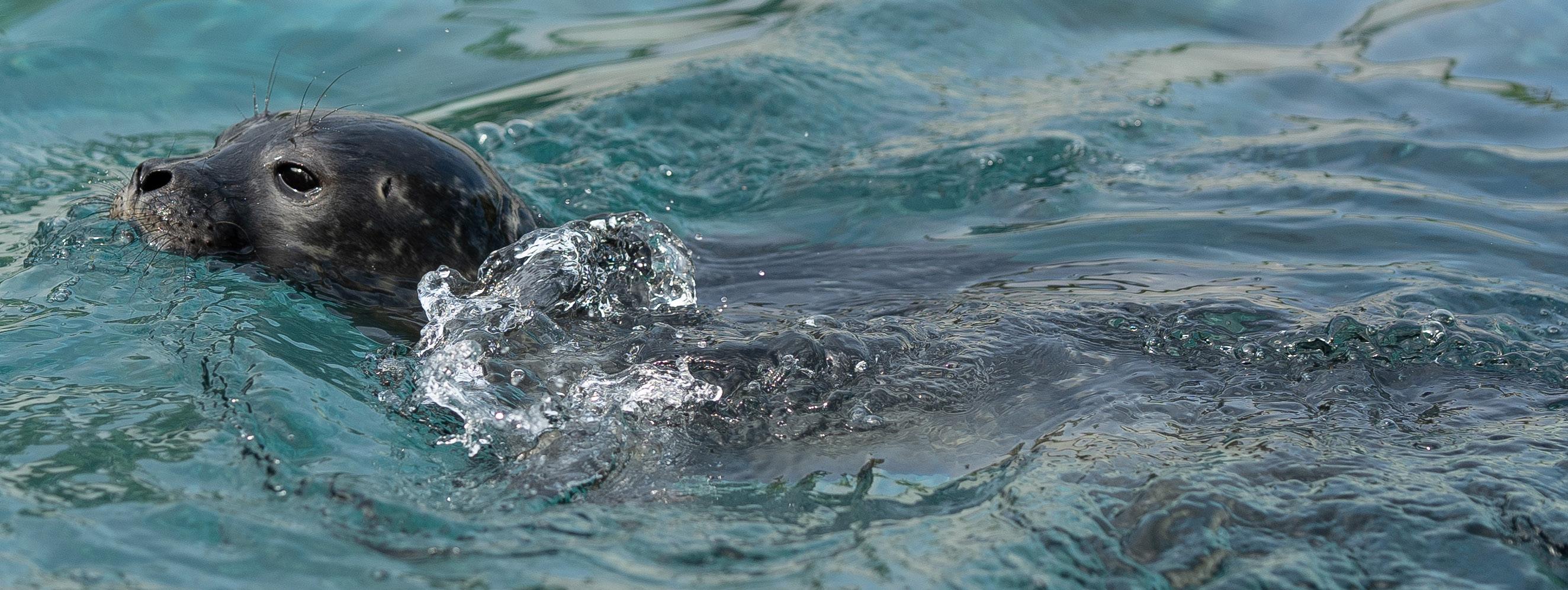 Like all youngsters, Goose is curious and playful. He has the benefit of a steady, healthy diet, excellent medical care, and he joins a well-rounded social group provided by the other seals in the pod at Mystic Aquarium.