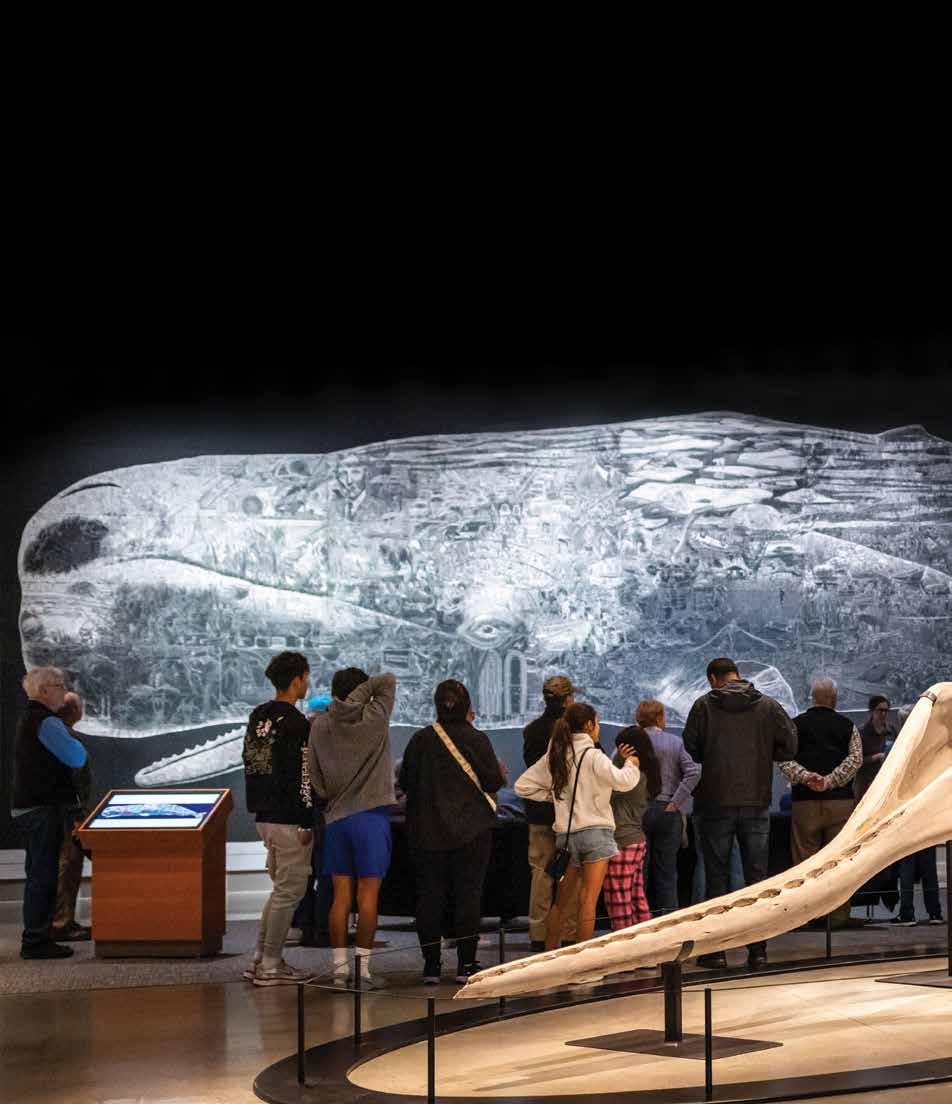Photo (right): Or, the Whale by Jos Sances, on display in Monstrous: Whaling and Its Colossal Impact, is embedded with a history of capitalism in America and images of human and environmental exploitation and destruction since 1850. The whale is a metaphor for survival, immortality, and a reason for optimism.