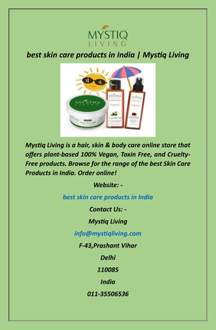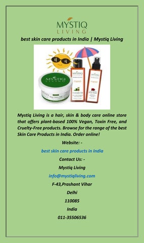 Mystiq Living is a hair, skin & body care online store that offers plant-based 100% Vegan, Toxin Free, and Cruelty-Free products. Browse for the range of the best Skin Care Products in India. Order online!