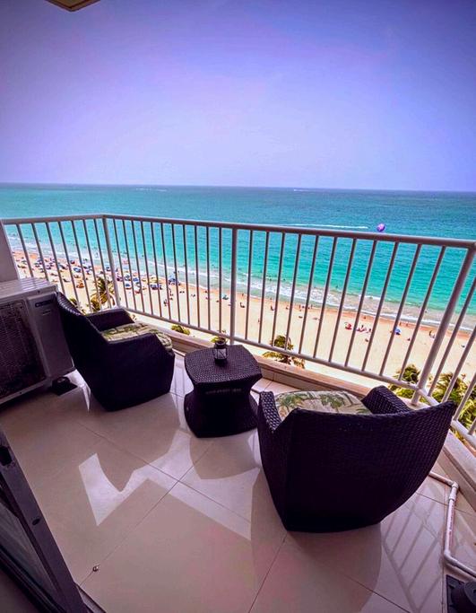 Welcome to your tropical retreat at Marbella Del Caribe in Isla Verde, Puerto Rico! This stylish 1bedroom apartment offers stunning ocean views from your private balcony, a comfortable living area with a flat-screen TV, a fully equipped kitchen, and a cozy bedroom designed for relaxation.