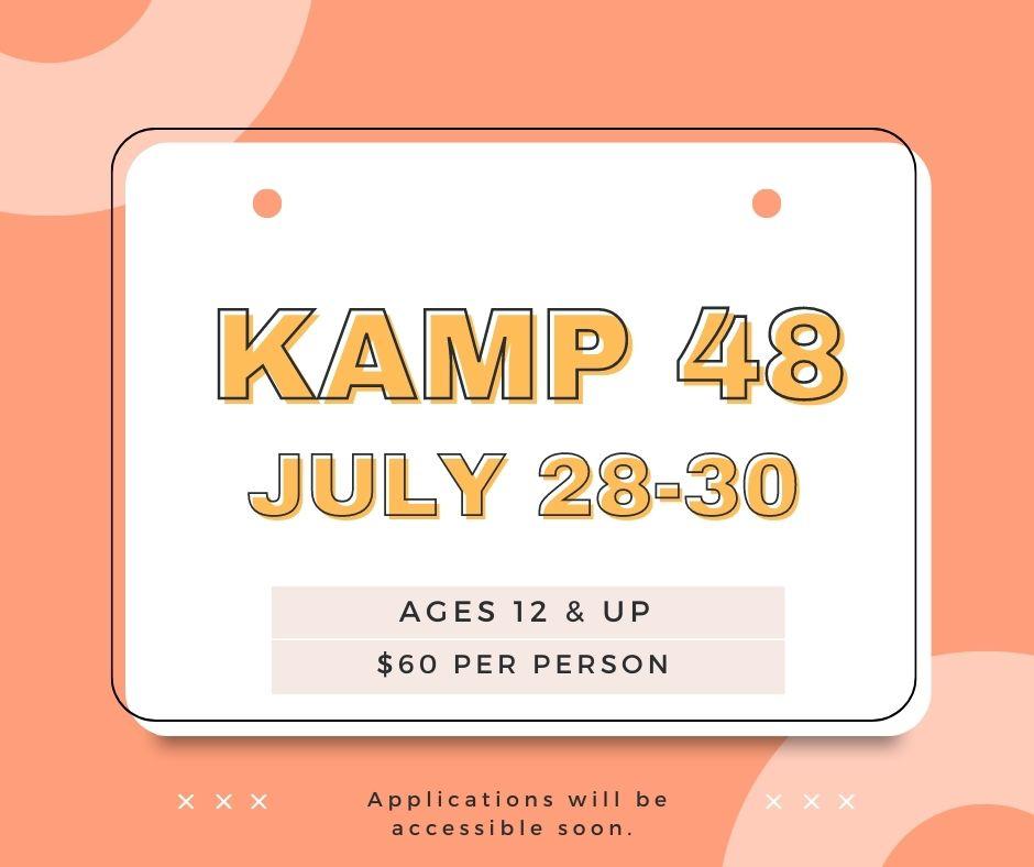 Kamp 48: July 28th – 30th $60 per person. (Applications on Facebook)