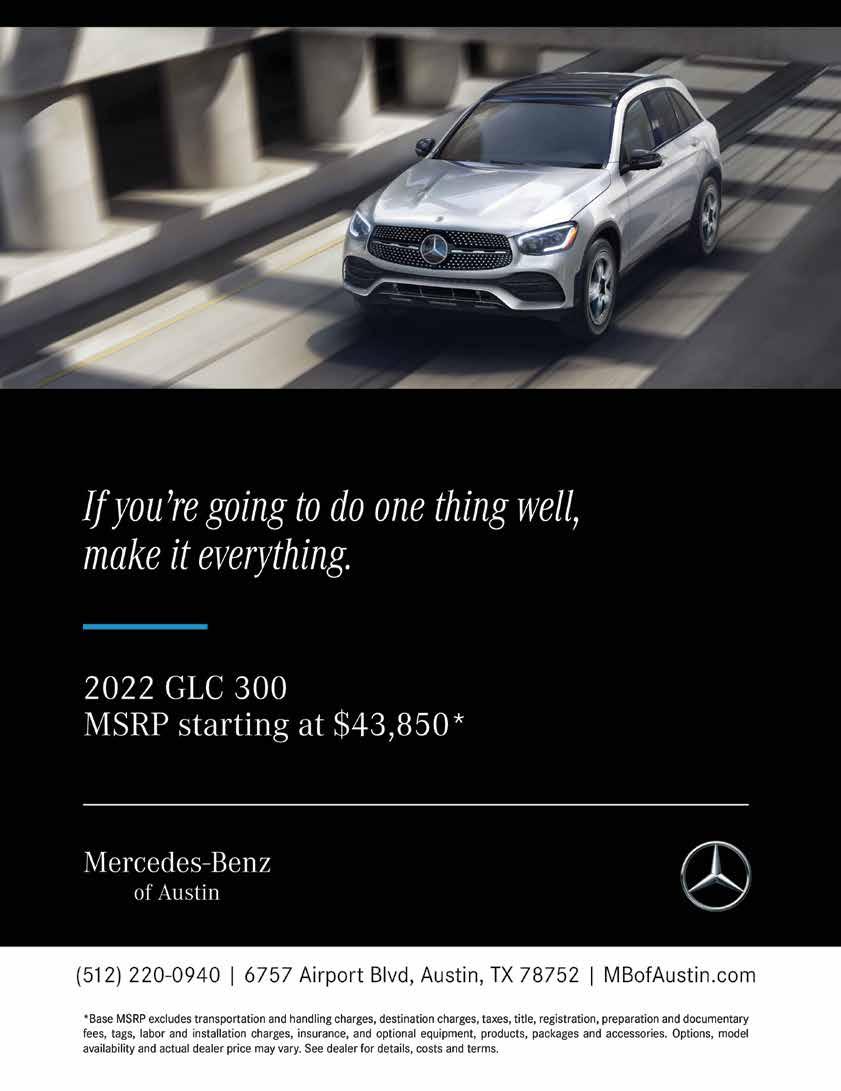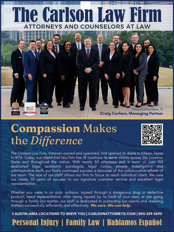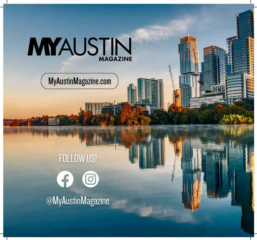 In the event of any errors or omissions on any ads or articles in this issue, will be cured in a future issue at publisher’s discretion. Any materials submitted after publishing deadline are not guaranteed to make the current issue. Next Issue: MyAustin Issue 224 deadline is April 30, 2024. For advertising inquiries, call 1-855-274-3375 or email: info@myaustinmagazine.com *All ads and content must be submitted by this date in order to be included in the next issue.