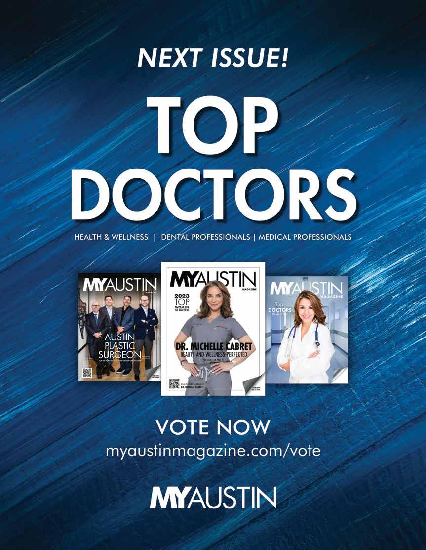 If you know someone who you think should be featured in the next issue, let us know!! Please email us at info@myaustinmagazine.com or visit us online at www.myaustinmagazine.com and vote for someone you know! In our next issue, look out for the Top Doctors in Austin. We are accepting nominations now from YOU, our lovely readers. We look forward to bringing you the Best of Austin in every issue!
