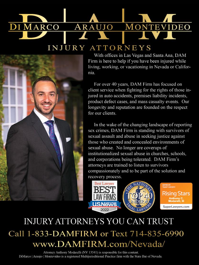 This special edition features a diverse group of lawyers practicing various types of law. Alongside well-known leaders and the rising stars of this year, we take pride in presenting the MYVEGAS Top Lawyers in Las Vegas. Many have credentials too numerous to list, but it is important to acknowledge that their talents and contributions extend beyond what we had space to print. This year’s recipients are exceptional attorneys who have achieved remarkable success and made significant positive impacts in our community. If you are in search of legal representation, these come highly recommended.