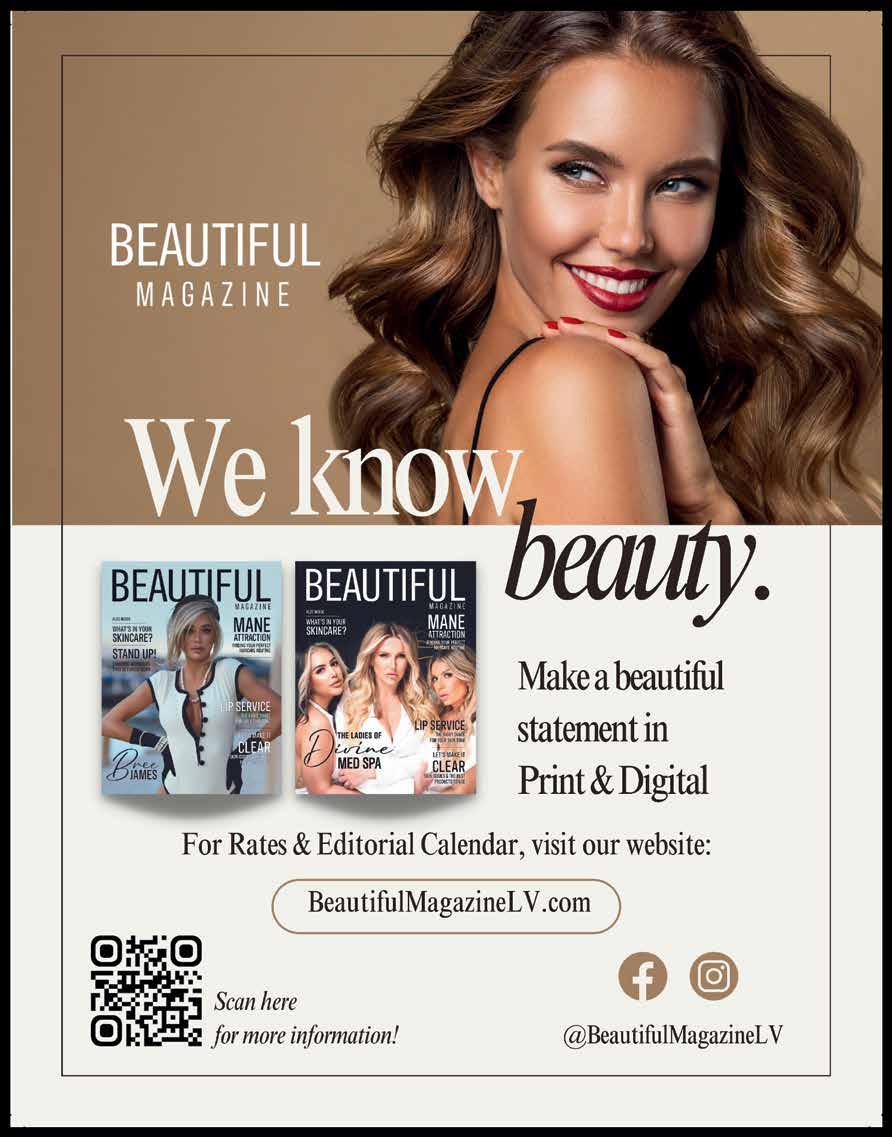 beauty location. The beauty industry is booming in this town, and there is no better place to curate incredible content and showcase the best this city has to offer. We can’t wait to keep creating and come out with the next issue! Keep up with Beautiful Magazine at www.BeautifulMagazinelv.com and be sure to follow us on social media @ BeautifulMagazineLV.
