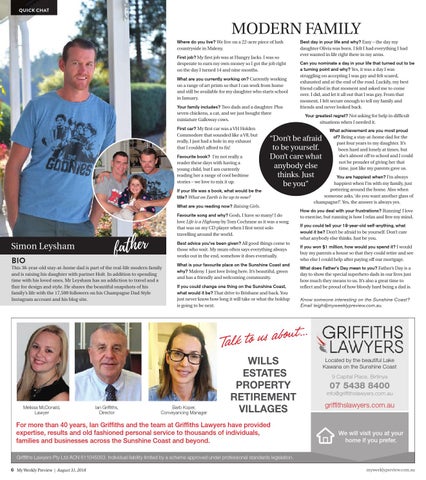 Know someone interesting on the Sunshine Coast? Email leigh@myweeklypreview.com.au.