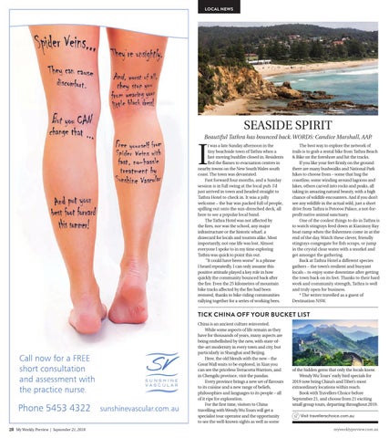 SEASIDE SPIRIT Beautiful Tathra has bounced back. WORDS: Candice Marshall, AAP.