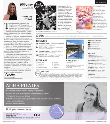 Book your session today Dr Anna Renwick BSc, PhD, Dip 0435 150 569 info@annapilates.com.au | annapilates.com.au myweeklypreview.com.au