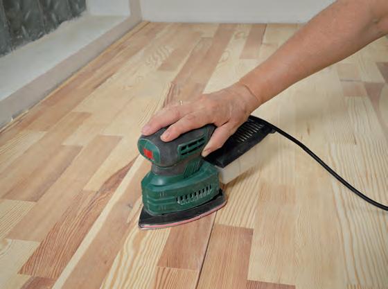 Check the floor for any loose nails or pieces of wood. Make sure each nail is sitting below the surface. Sandpaper the floor surface with a drum sander. Use an edging sander to get closer to the skirting boards, while