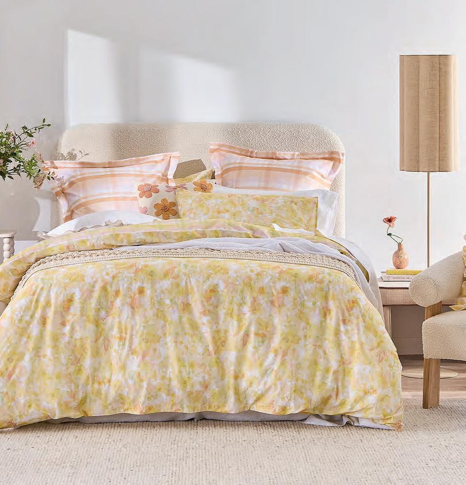 Refresh your bedroom with the Daniela floral reversible quilt cover set. The front features a vibrant floral pattern of yellow and orange tones to bring warmth, energy and a pop of colour to your room. On the reverse is a classic gingham design, offering a timeless and relaxed aesthetic. Available from Pillow Talk