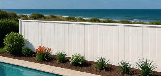 If you’re after full privacy and durability, Colorbond fencing remains a solid contender. Available in 15 colours and a range of styles, it’s well-suited to both modern and coastal homes. Built tough to withstand the elements, Colorbond offers security, a clean finish and virtually no maintenance, ideal for backyards where function is just as important as form. Find out more about the range at metroll.com.au/ product_categories/ colorbond-fencing/.