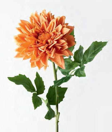 The Dahlia spray in orange from Domayne, Maroochydore Homemaker Centre, features lifelike detailing, providing visual appeal without the high-maintenance hassle. Arrange in a vase alongside other colours or simple greenery.