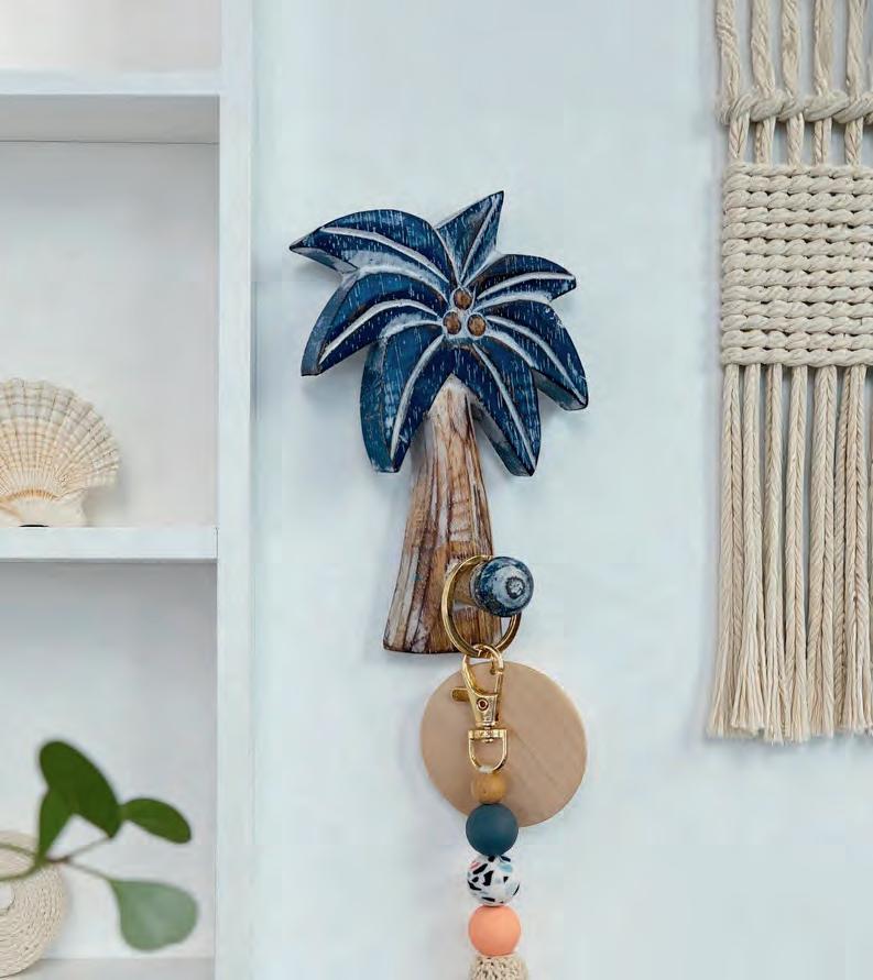 The Hooked on Palms wooden wall hooks are made by hand using reclaimed timber and finished in shades of navy (pictured), green, blue and white. Available from Coastal Drift Home, Caloundra and Kawana Shoppingworld.