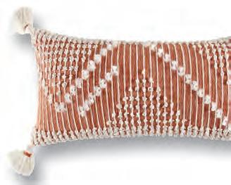 Featuring terracotta tones, the rustic and bohemian Zigi cushion will brighten any couch. Linear cording, artistic knotting and zig zag patterns on an earthy cotton base create a textured look. Visit kasaustralia.com.au for local stockists.