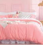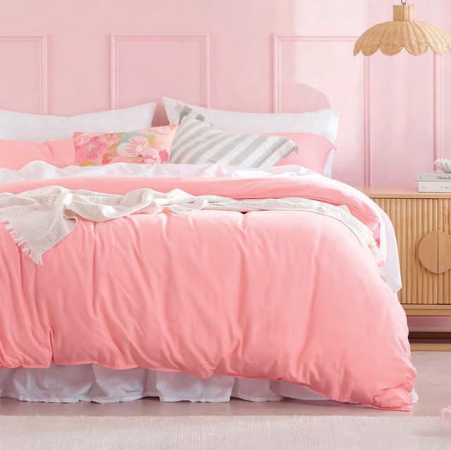 If you like pink, this is the bedding for you. The washed linen-look quilt cover is sure to impress. The cotton doona cover features a twocentimetre self-flange finish and is perfectly paired with natural textures and organic touches. It’s from Pillow Talk