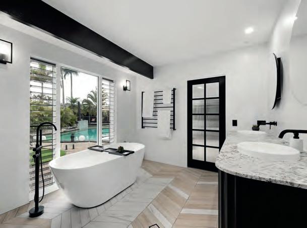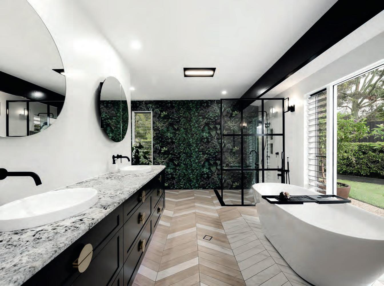 CATEGORY: $20,000 plus. The colour black is a timeless symbol of sophistication and refinement. When incorporated thoughtfully into a bathroom renovation or new build, it can elevate the space. As shown in this home, sleek black cabinets not only provide the practical advantage of being easy to clean, but create a sense of luxury.