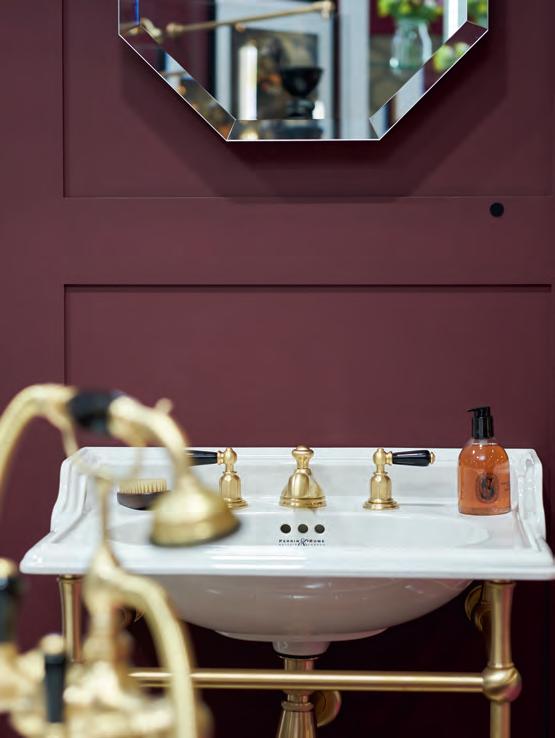 Tapware in brass and bronze, such as the Perrin & Rowe products pictured, complement