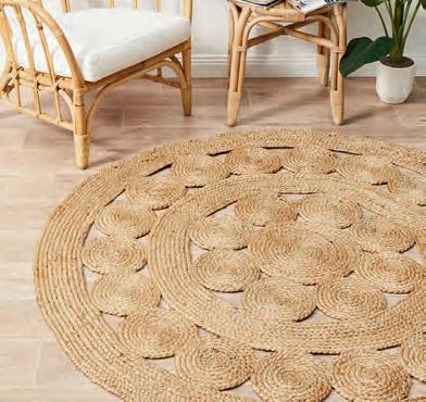 The collection of Atrium rugs from Choices Flooring are crafted by artisans using sustainably harvested jute, a fast-growing, renewable natural fibre. This natural fibre rug is a great style addition for an eco-friendly household. Visit choicesflooring. com.au.