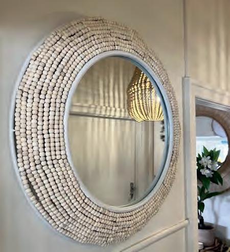Framed with rows of beaded natural timber balls, the Aria round mirror will bring a sense of coastal luxury to your home. Measuring 60 centimetres in diameter, it is a stunning feature piece for any room. It’s from Coast Store, Cotton Tree.
