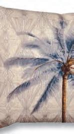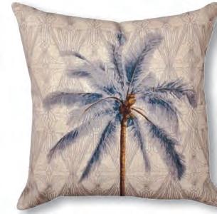 Bring your vacation home with the Akoni denim outdoor cushion from Domayne. A stylised palm tree is the focus feature, while the denim-coloured leaves offer a striking contrast.