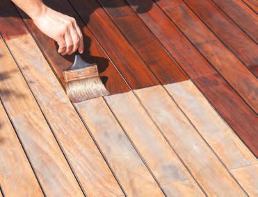 thorough clean. A high-pressure hose will remove dirt, scum and old coatings effectively. If needed, use a deck cleaner to scrub away stains.