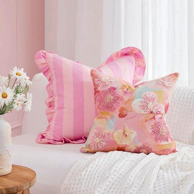 The stunning and sunny Azalea outdoor cushion range is both UV and water resistant. You’ll find the selection at Pillow Talk