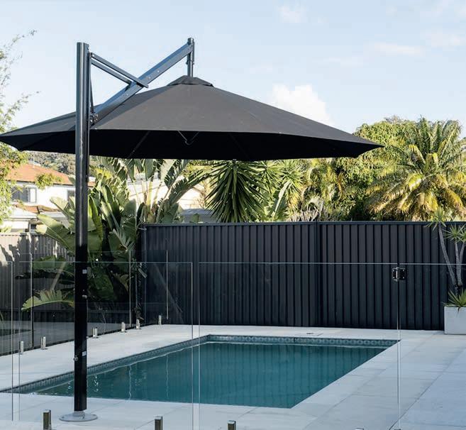 The wind-rated Revolvashade Ultimate Deluxe cantilever umbrella is versatile for pool areas or outdoor dining settings. It’s from Daydream Leisure Furniture , Warana.