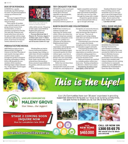 the kitchen at community dinners. “The volunteer team I work with has become like a family to me,” she says. “They are all supportive and caring, helping each other out whenever we have problems of our own.” Volunteering is one of the best ways to make new friends, strengthens ties to the community and broadens support networks. Volunteering Sunshine Coast has over 140 non-for-profit organisations as members who are constantly seeking people for a variety of volunteer positions right across the Sunshine Coast. Skills and interests are matched to a suitable position within your home area. Training and guidance is offered in a field of your choice. Volunteering Sunshine Coast 5443 8256 or 0410 437 977