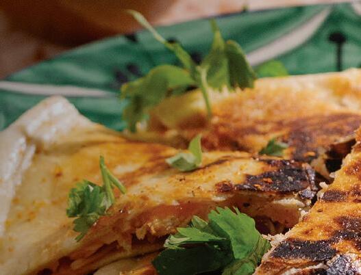 Place a tortilla in a large pan and sprinkle with cheese mixture. Add the warm chicken mix and add more cheese on top. You can add another tortilla on top or fold the tortilla in half. Grill over low heat until golden brown and melted.