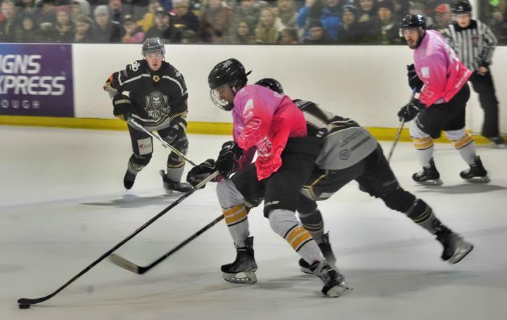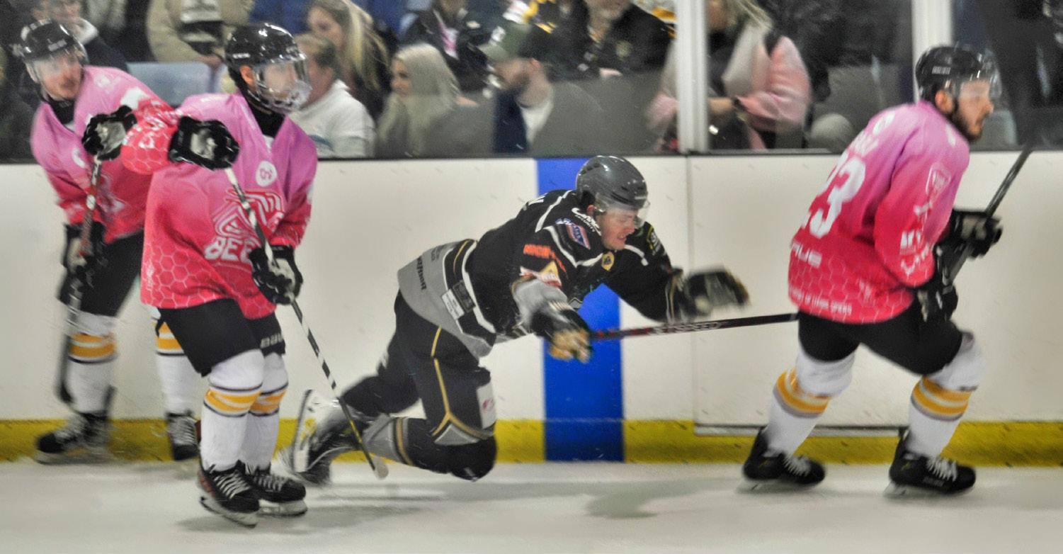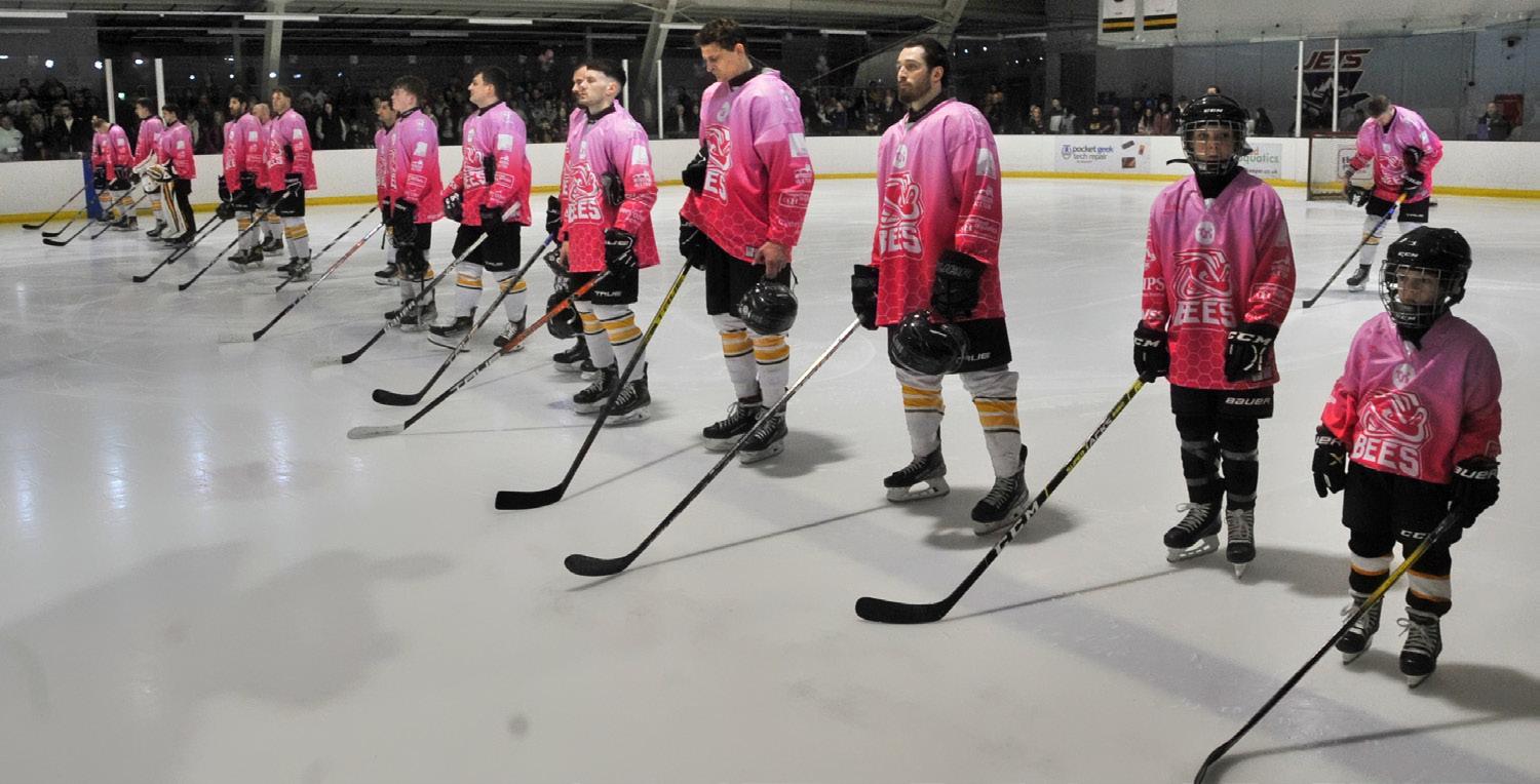 After a close battle in Milton Keynes on the previous night, the TSI World Bees welcomed the Milton Keynes Lightning to the Slough Ice Arena on Sunday evening for their second encounter with the Lightning for the weekend with the presence of the Pink Ribbon Foundation. It was a great start to the game for the Bees as Will Stead was able to get the puck to the