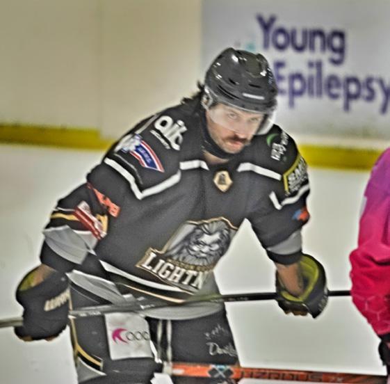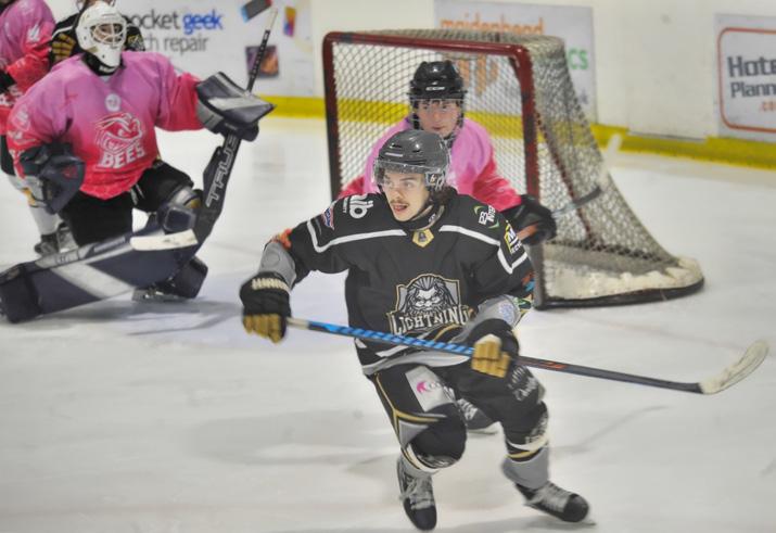 back of the Lightning's goal only 02:24 into the game with Ryan Webb and Oli Knaggs receiving assists on the goal. The Bees found themselves with a man advantage due to the Lightning’s Ross Green receiving a two-minute for kneeing, which saw Dominik Gabaj take advantage with the help of Vanya Antonov and Ed Bradley at 14:59 to extend the Bees lead. Continues on page 39