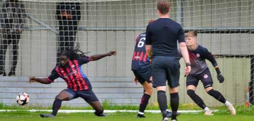 a low cross from the right hand side into the visitors’ penalty area where Junaid Bell did well to control the ball only to shoot over the crossbar.