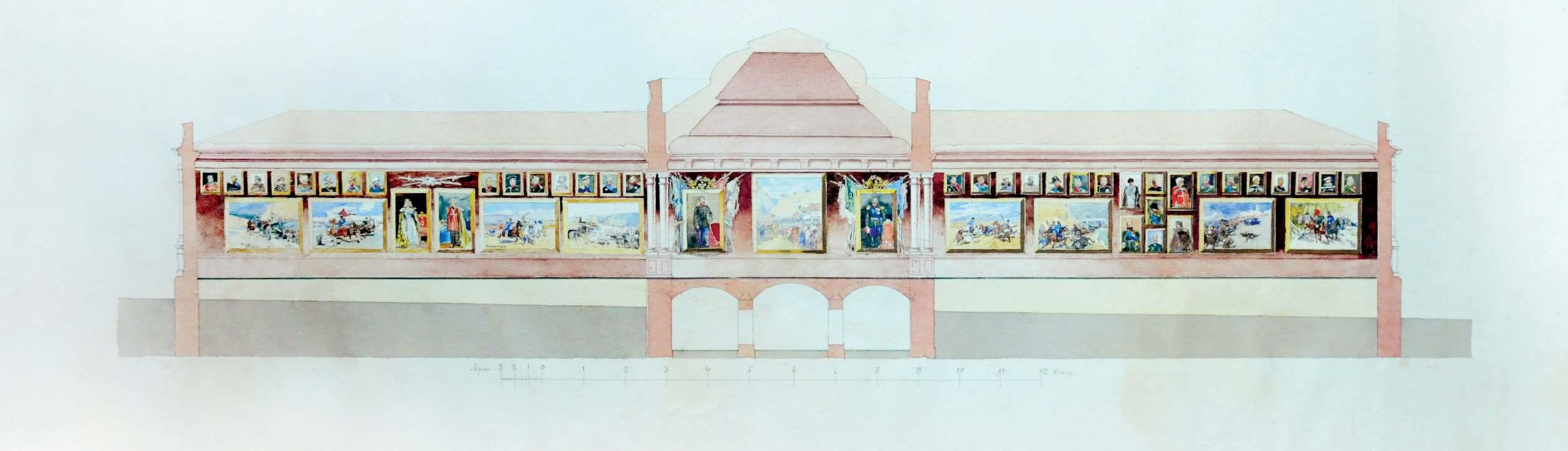 darbazebSi dagegmili eqspoziciis gasaformeblad da bataluri scenebis dasaxatad mTel ruseTis imperiaSi kargad cnobili mxatvrebi – franc rubo, maqs tilke, ivane aivazovski da